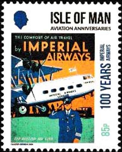 13 13. Großbritannien – Isle of Man - 6-wertige Serie „Luftfahrtjubiläen“, Mi.-Nr. 3155-60, Beispielabbildung: Mi.-Nr. 3155 100 Jahre Imperial Airways, Handley Page H.P.42E „Hannibal“ von Imperial Airways -