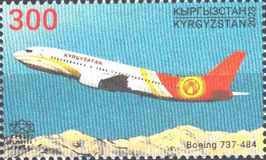 18-Kirgisistan KEP - 2-wertige Serie „50 Jahre Kirgisisches Luftfahrtinstitut ‘Ishembay Abdraimov’“, Mi.-Nr.225-26, Beispielabbildung Mi.-Nr. 226 Boeing 737-484 von Kyrgyzstan -