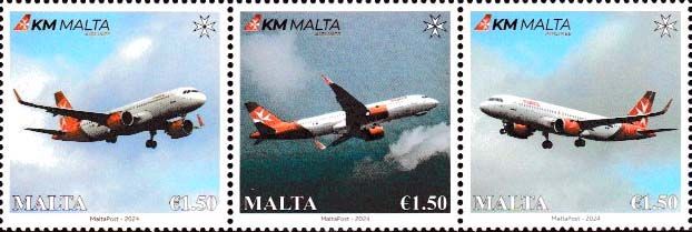 23 Malta - 3-wertige Serie „KM Malta Airlines“, Mi.-Nr. 2280-62, Abbildung des Dreierstreifens -