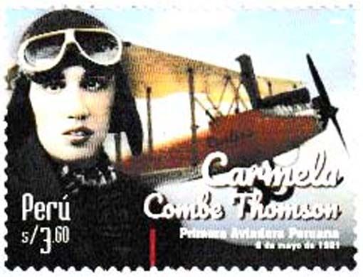 30 Peru - Einzelmarke „Carmela Combe Thomson“, noch ohne Mi.-Nr., Curtiss Oriole, Camele Combe Thomson -