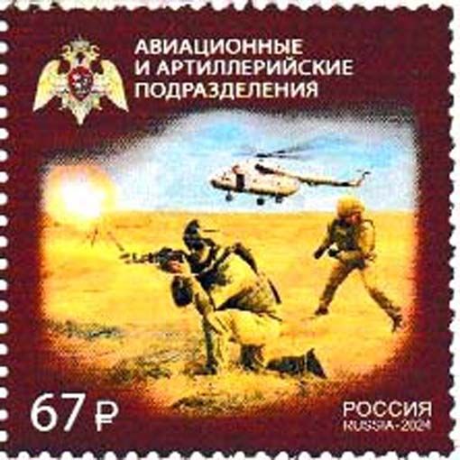 32 Russland - 2 Marken aus 10-wertigem Kleinbogen „Zuständigkeiten des Föderalen Dienstes der Nationalgarde“, Mi.-Nr.3451 und 3456, Beispielabbildung Mi.-Nr. 3451 Mil Mi-8MTV-1 -