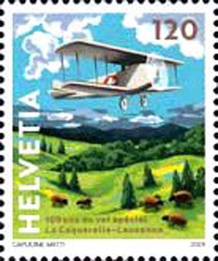 35 Schweiz - Einzelmarke „100 Jahre Sonderflug La Caquerelle– Lausanne“, Mi.-Nr. 2945 Rumpler C I -