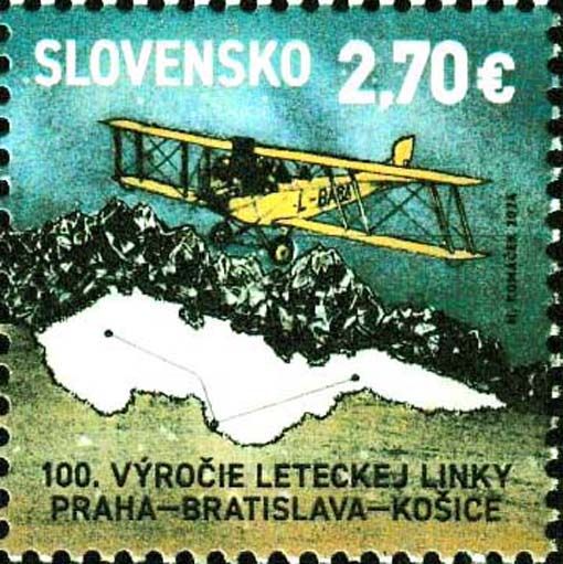 36 Slowakei - Einzelmarke „100 Jahre Flugverbindung Prag – Bratislava - Kosiče“, Mi.-Nr. 1019 Aero A.14 von ČSA -