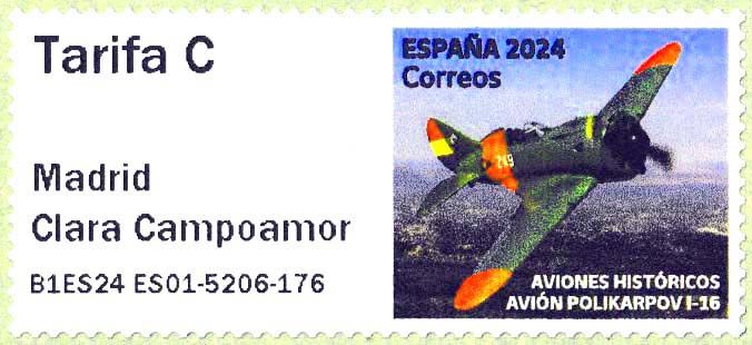 39 Spanien - Automatenmarke Mi.-Nr. 240 Polikarpov I-16 -