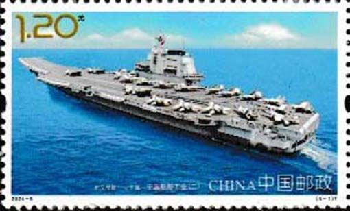 04 China - Einzelwert aus 4-wertiger Serie „Schiffbauindustrie in China“, Mi.-Nr. 5567 Flugzeugträger „Shandong“ (Type 002), Shenyang J-15 -