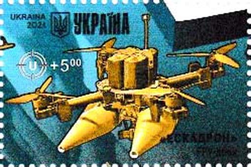 43 Ukraine - 3 Marken aus Block Mi.-Nr. 202(2132-37) „Ukrainische Waffen des Sieges“, Mi.-Nr.2132-34, Beispielabbildung Mi.-Nr.2134: Anti-Panzer-Drohne der Produzentengruppe Eskadron -