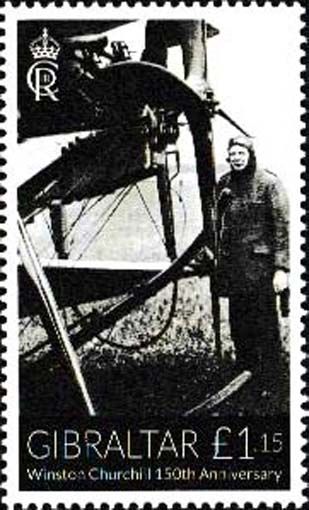 09 Gibraltar - Einzelmarke aus 6-wertiger Serie „150. Geburtstag von Winston Churchill“, Mi.-Nr. 2152 Royal Aircraft Factory B.E.2a, Winston Churchill in (Co-)Pilotenmontur -